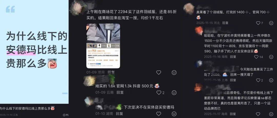 在社交平台上,“安德玛为什么这么贵”和“安德玛怎么又打折了”,同时成为高频问题,消费者对其价格认知呈现出明显撕裂。